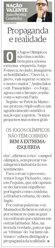 Marcelo condena sem dúvida os ataques de Nelson Évora a Pichardo. Mas também as opiniões xenófobas do ex-deputado europeu comunista Miguel Viegas. E ainda não tinha surgido Bessone Basto a defender que Portugal só obteve uma medalha, a do limiano Fernando Pimenta.