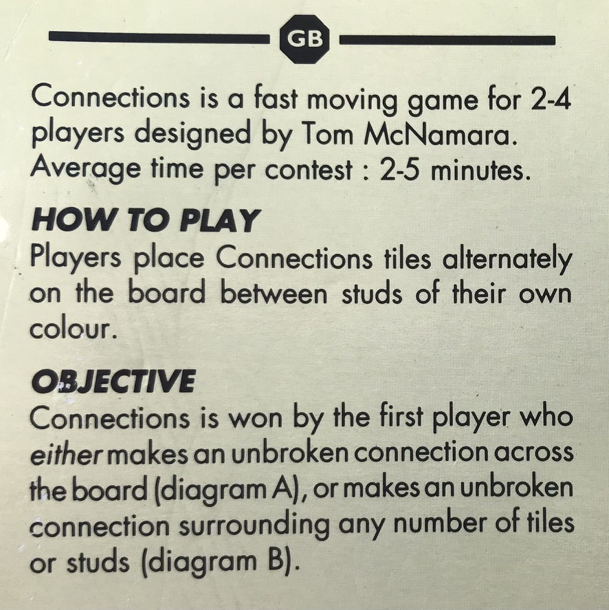 Mais uma visita à Feira de Velharias de Carcavelos. Hoje tive sorte e trouxe o jogo Connections. Trata-se do jogo de David Gale, versão europeia.